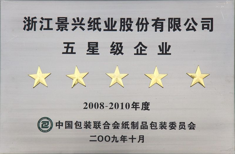 2010. | 06. | 景興紙業(yè)被中國造紙協(xié)會(huì)、中國財(cái)貿(mào)輕紡煙草工會(huì)授予“全國造紙行業(yè)勞動(dòng)關(guān)系和諧企業(yè)”稱號(hào)。 |