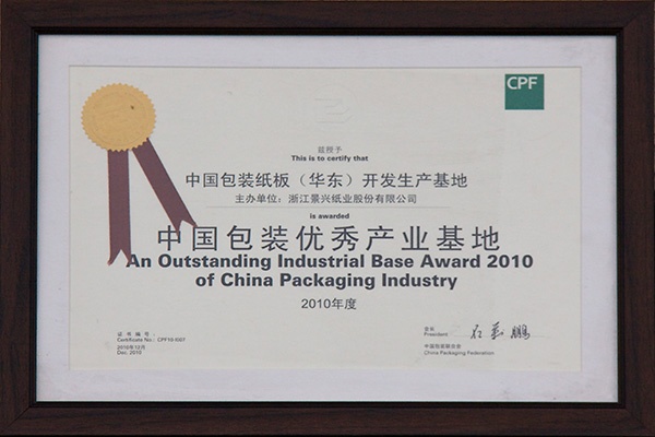 09. | 景興紙業(yè)申報(bào)國家級(jí)包裝紙板開發(fā)生產(chǎn)基地順利通過認(rèn)證,且于2003年1月起正式成為國家級(jí)包裝紙板開發(fā)生產(chǎn)基地。 | |