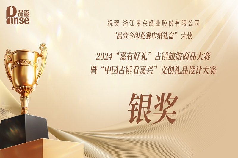 近日,景興紙業(yè)“品萱全印花餐巾紙禮盒” 在嘉興市文化廣電旅游局舉辦的2024“嘉有好禮”古鎮(zhèn)旅游商品大賽暨“中國古鎮(zhèn)看嘉興”文創(chuàng)禮品設(shè)計(jì)大賽上成功摘得銀獎(jiǎng)!